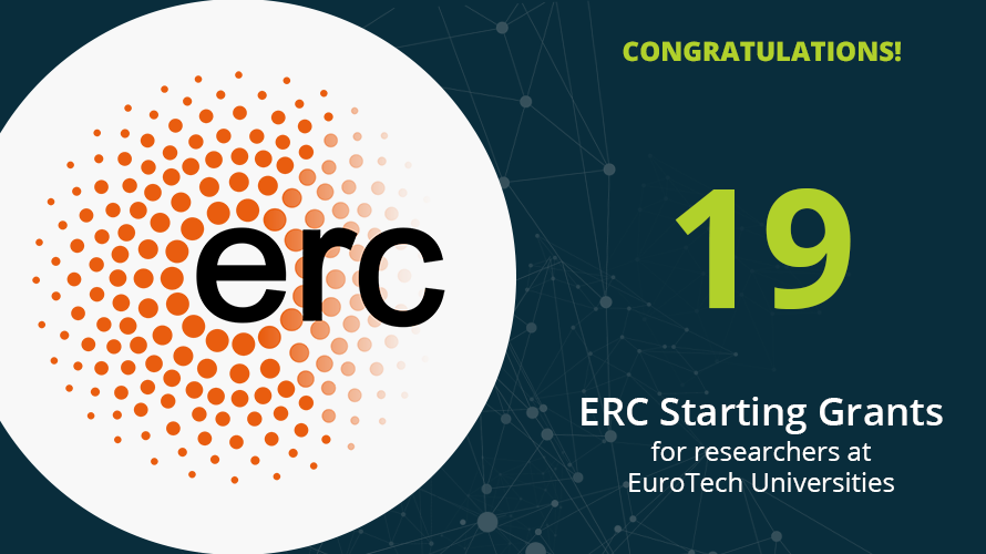 6 September 2023 | Congratulations to 19 young researchers affiliated with EuroTech Universities who were awarded an ERC Starting Grant yesterday! Out of those 19